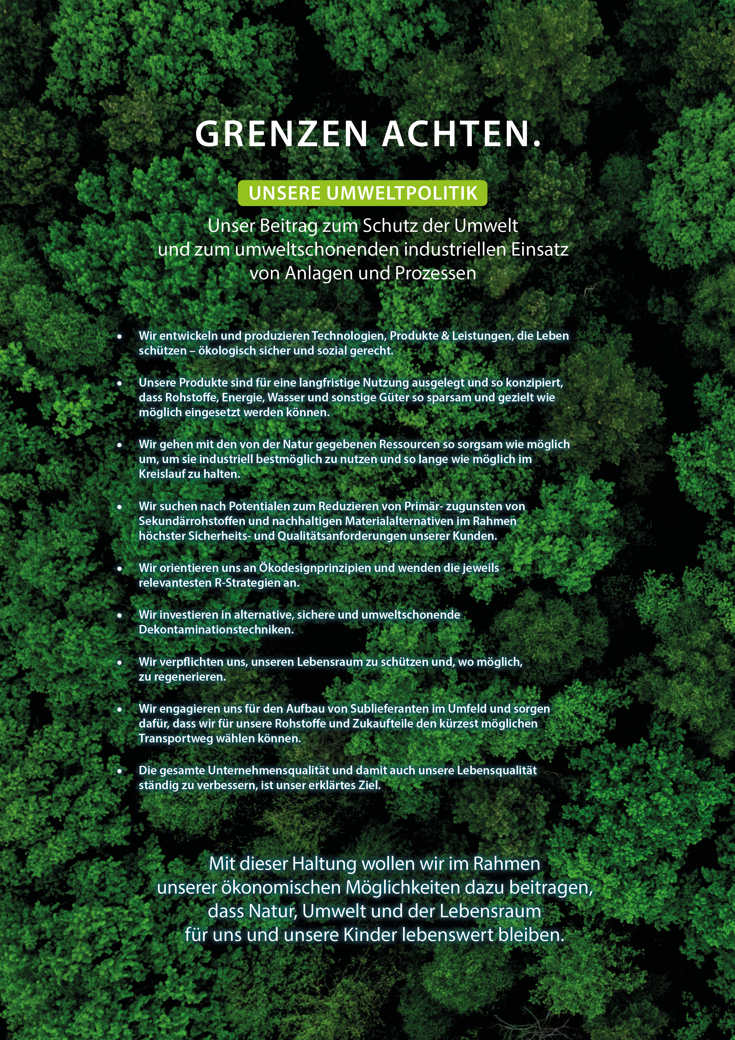 "Wir freuen uns, wenn Sie uns auf diesem Weg begleiten – als Mitarbeitende, Kunden oder Partner. Denn – Veränderung gelingt nur gemeinsam. In diesem Sinne: für eine auch weiterhin lebenswerte Zukunft auf unserem wunderschönen Planeten."